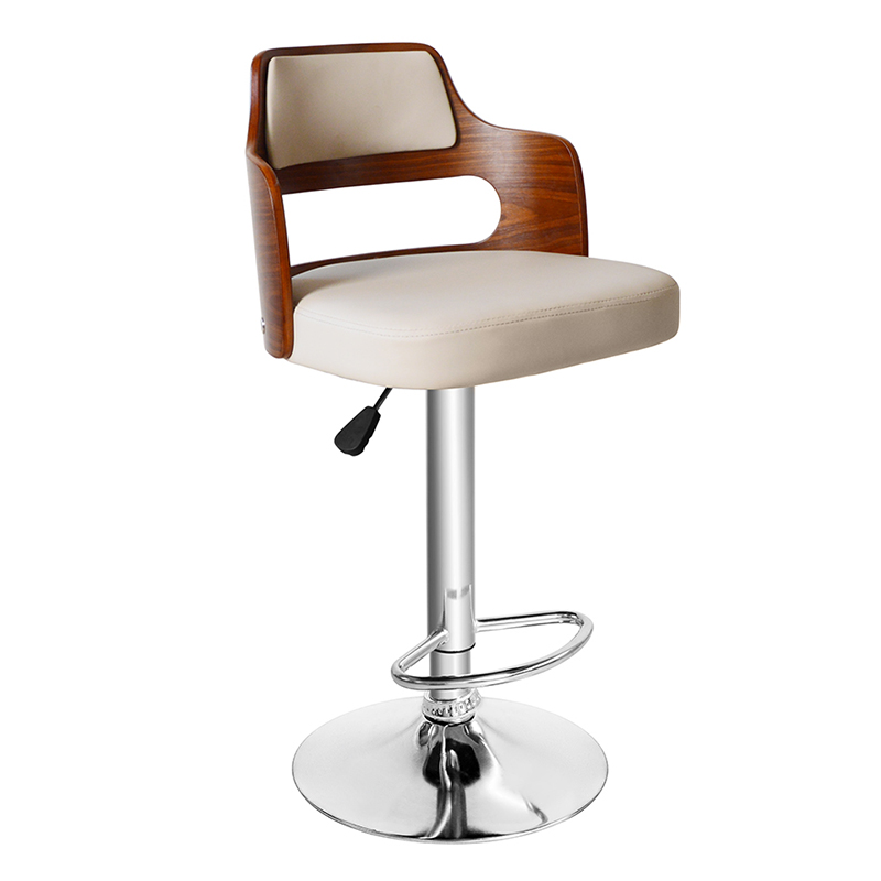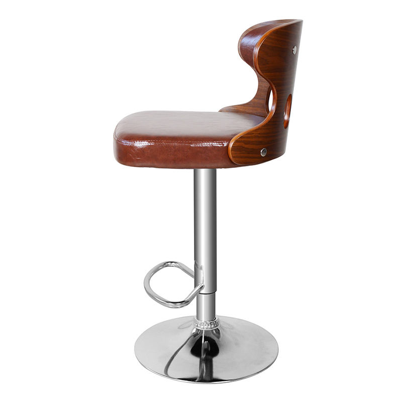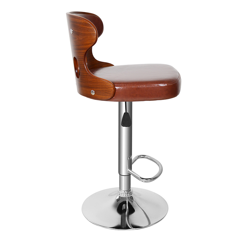 Svängbar enkel PU barstol med låg rygg i trä (GY-634)