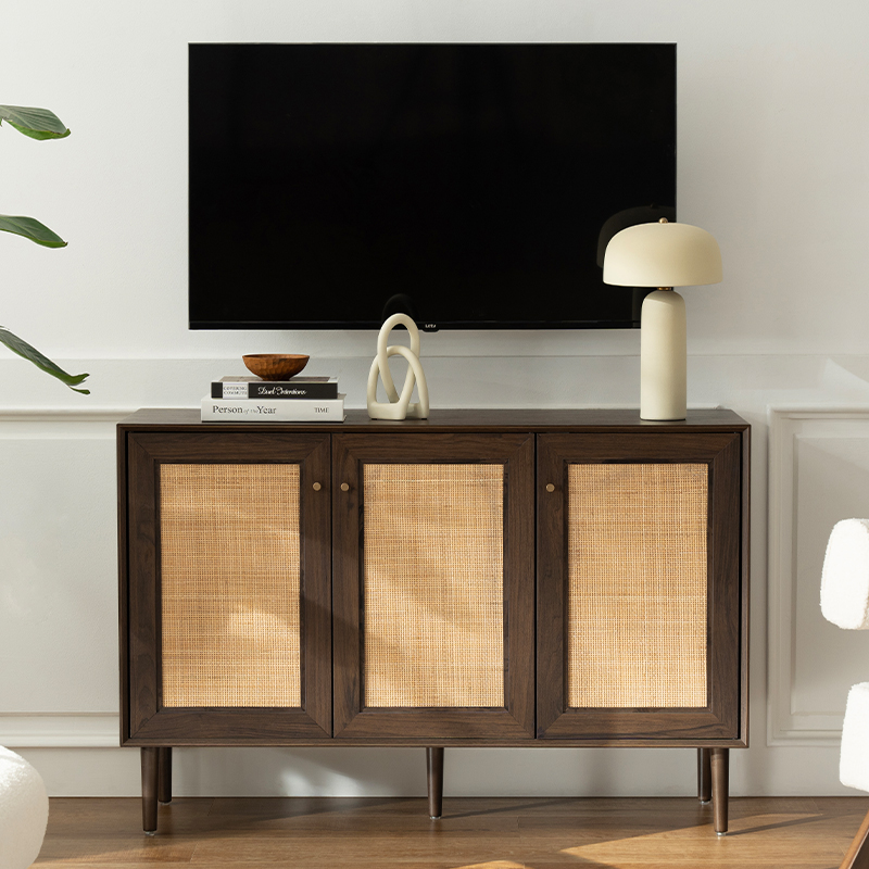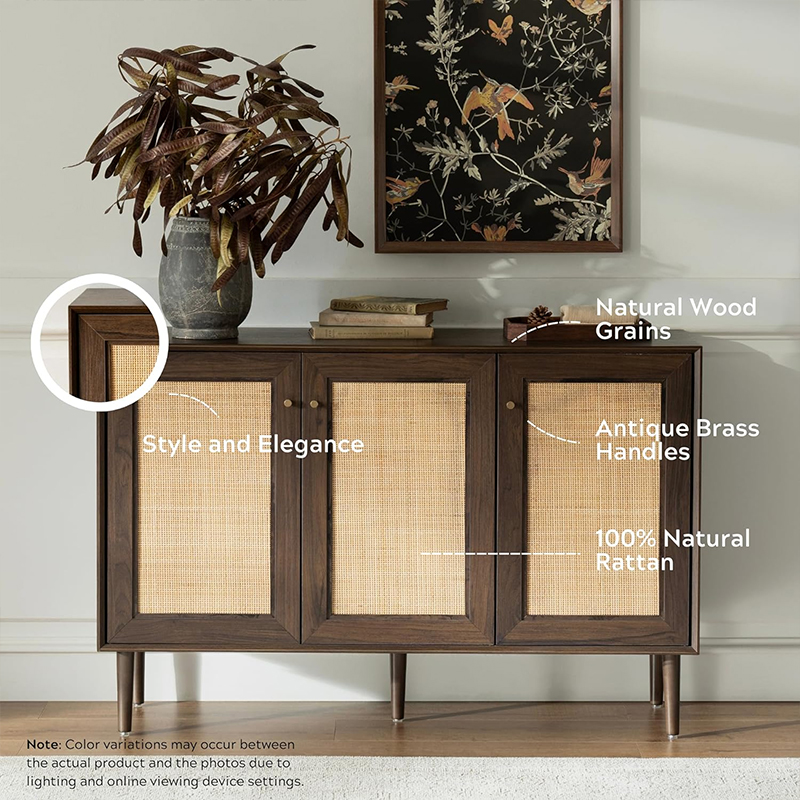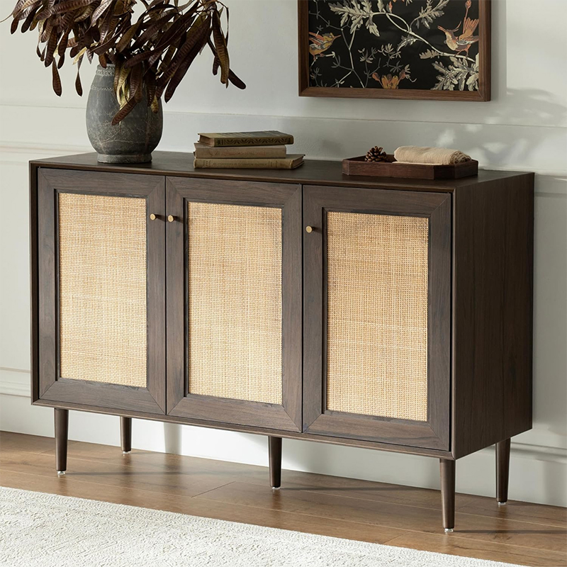 Köksförvaringsskåpet med tre dörrar i trärotting (Y-C42) är ett bra komplement till alla kök. Detta skåp erbjuder funktionalitet, stil och hållbarhet. Den är gjord av högkvalitativa trä- och rottingmaterial, vilket säkerställer dess livslängd och goda byggkvalitet.