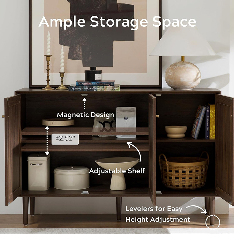 Sammanfattningsvis är Wood Rattan Three Doors Kitchen Storage Cabinet (Y-C42) en bra investering för alla kök. Dess funktionalitet, hållbarhet och attraktiva design gör den till ett måste för alla matlagningsentusiaster. Dess gott om lagringsutrymme och tilltalande funktioner gör den till ett enastående tillbehör för alla hem.